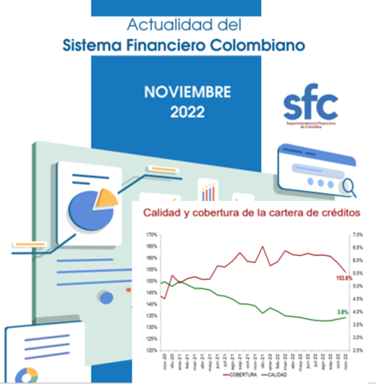 En su informe mensual de actualidad de sistema financiero Colombiano, la Superintendencia Financiera destacó las cifras más relevantes de las entidades crediticias con corte al cierre de noviembre de 2022.