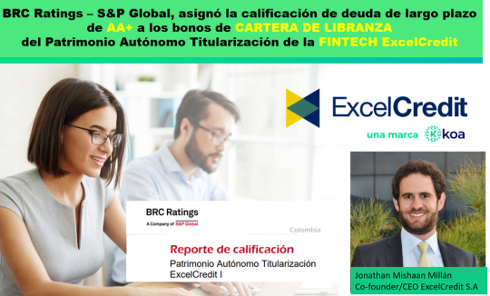 El Comité Técnico de BRC Ratings – S&P Global S.A. le asignó una calificación inicial de deuda de largo plazo de AA+ a los bonos del Patrimonio Autónomo Titularización ExcelCredit I por COP 25,000,000,000.