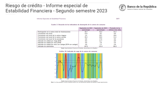 A pesar de lo anterior, en el actual contexto de condiciones financieras restrictivas y ajuste económico persisten presiones sobre la capacidad de pago de los deudores, por lo cual resulta necesario continuar con el monitoreo de las dinámicas de otorgamiento y materialización de riesgo de crédito en el futuro cercano.