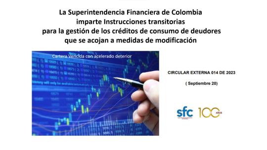 Como una medida que permita a las entidades financieras, tener herramientas de gestión ante el deterioro del perfil crediticio de los consumidores financieros, afectados por la coyuntura macroeconómica actual, marcada por un contexto de desaceleración, e inflación persistente, que ha afectado la carga financiera de los hogares e impactado directamente la capacidad de pago de los deudores, particularmente en los créditos de consumo, la Superintendencia Financiera de Colombia, acaba de expedir la Circular Externa 014 de 2023, mediante la cual alivia las exigencias de calificación para la modificación de créditos, figura regulada en los términos del Capítulo XXXI – Sistema Integral de Administración de Riesgos (SIAR) de la Circular Básica Contable y Financiera (CBCF).