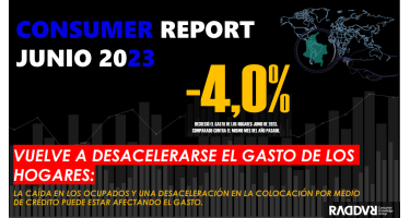 En Viviendo el crédito - En junio de 2023, el gasto de los hogares decreció -4,0% frente al mismo mes del año...