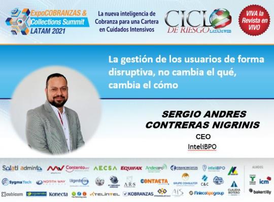 Especial VIVA la Revista en VIVO - Disfrute de nuestros invitados a la Mesa de Expertos de ExpoCOBRANZAS Latam 2021 con la visión de SERGIO ANDRES CONTRERAS, CEO de InteliBPO, sobre la forma en que la gestión de los usuarios de forma disruptiva, no nos lleva a cambiar el qué; en realidad nos lleva a cambiar el cómo.