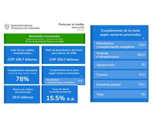 Recordemos que el Pacto por el Crédito, se constituye en compromiso del sistema bancario para desembolsar 254.72 billones de pesos en un periodo de 18 meses, (septiembre de 2024 y febrero de 2026), destinados a cinco sectores, estratégicos priorizados.