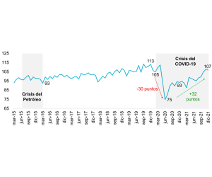 En el cuarto trimestre de 2021, el Indicador de la Industria de Crédito de TransUnion (IIC) aumentó 14 puntos, año contra año, impulsado tanto por el crecimiento de la demanda y la oferta de crédito como por la mejora del comportamiento de los consumidores