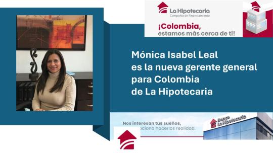 La Hipotecaria Compañía de Financiamiento, anunció el nombramiento de Mónica Isabel Leal Vázquez como su nueva Gerente General y Representante Legal en Colombia.