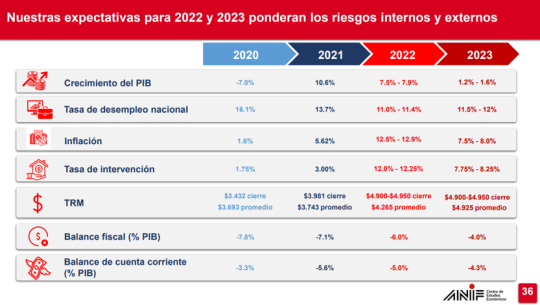ANIF TERMINIO SU PRESENTACIÓN CON LAS PROYECCIONES ECONÓMICAS PARA 2023 (ver diapositiva 36 en la presentación que se Adjunta en el link final.)