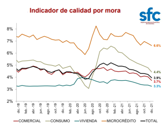 Con el 3,9% cerró la cartera vencida en Colombia el año 2021