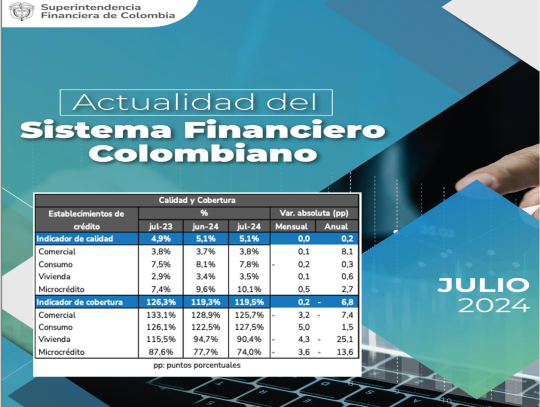 En 5,1% cerró la cartera vencida a julio 2024 en Colombia, contenida frente a junio
