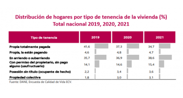 En 2021, el 39,4% de los hogares del país vivía en una vivienda propia (totalmente...