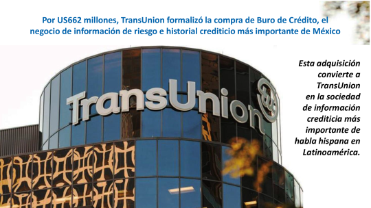 Esta adquisición consolida la posición de liderazgo de TransUnion en la región y la convierte en la sociedad de información crediticia más importante de Latinoamérica de habla hispana.