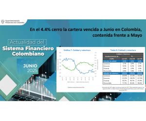 Según el último informe de actualidad del sistema financiero colombiano con corte a junio de 2025, el saldo bruto de la cartera ascendió a $728,9b y el indicador de profundización se situó en 40,9% del PIB (medido como la relación de cartera bruta a PIB).