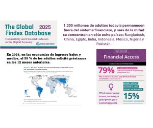 1.300 millones de adultos todavía permanecen fuera del sistema financiero formal y más de la mitad de ellos –650 millones– se concentran en sólo ocho países: Bangladesh, China, Egipto, India, Indonesia, México, Nigeria y Pakistán.