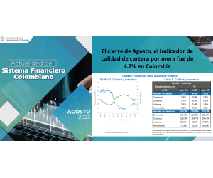 Según el último informe de actualidad del sistema financiero colombiano con corte a Agosto de 2025, el saldo bruto de la cartera ascendió a $736,6b y el indicador de profundización se situó en 41,4% del PIB (Medido como la relación de cartera bruta a PIB).
